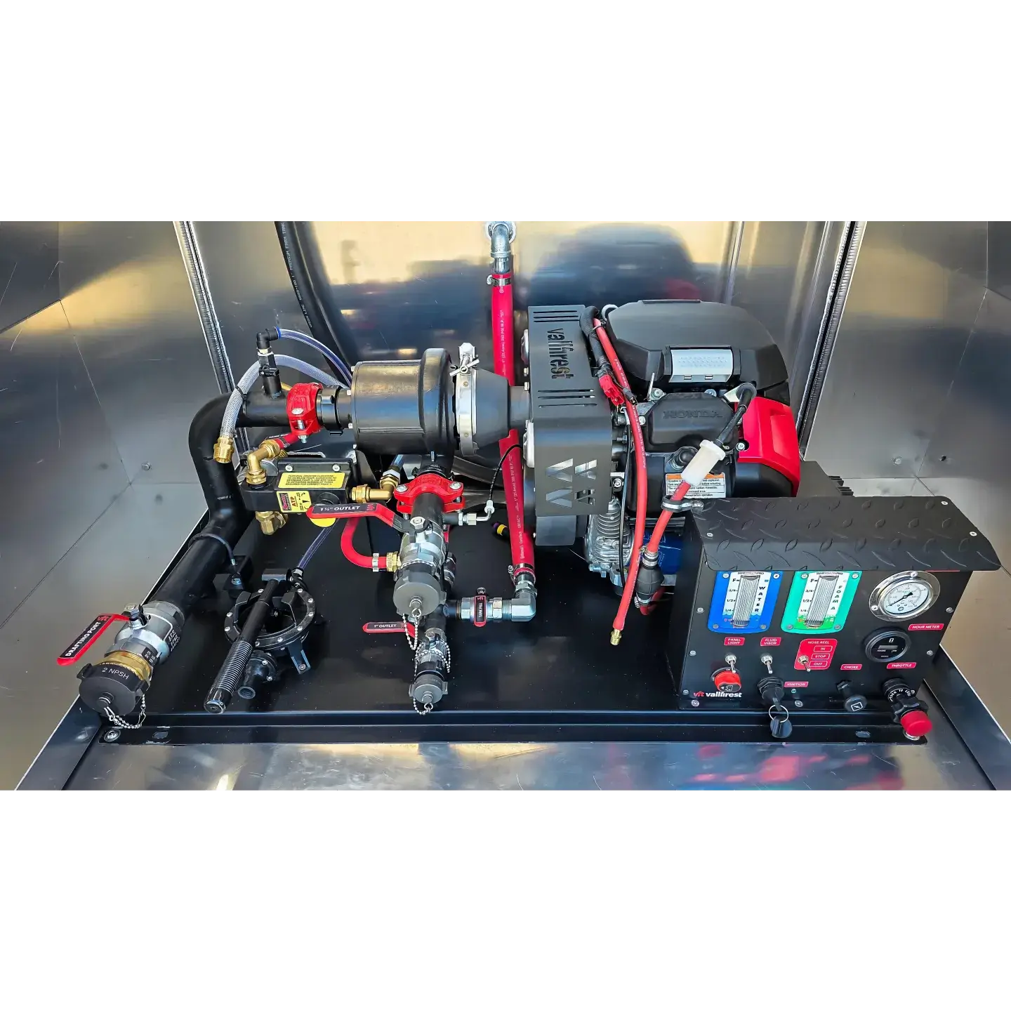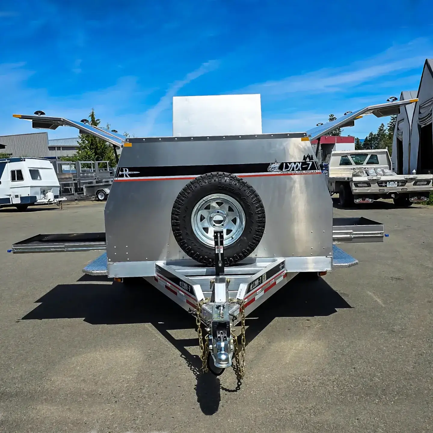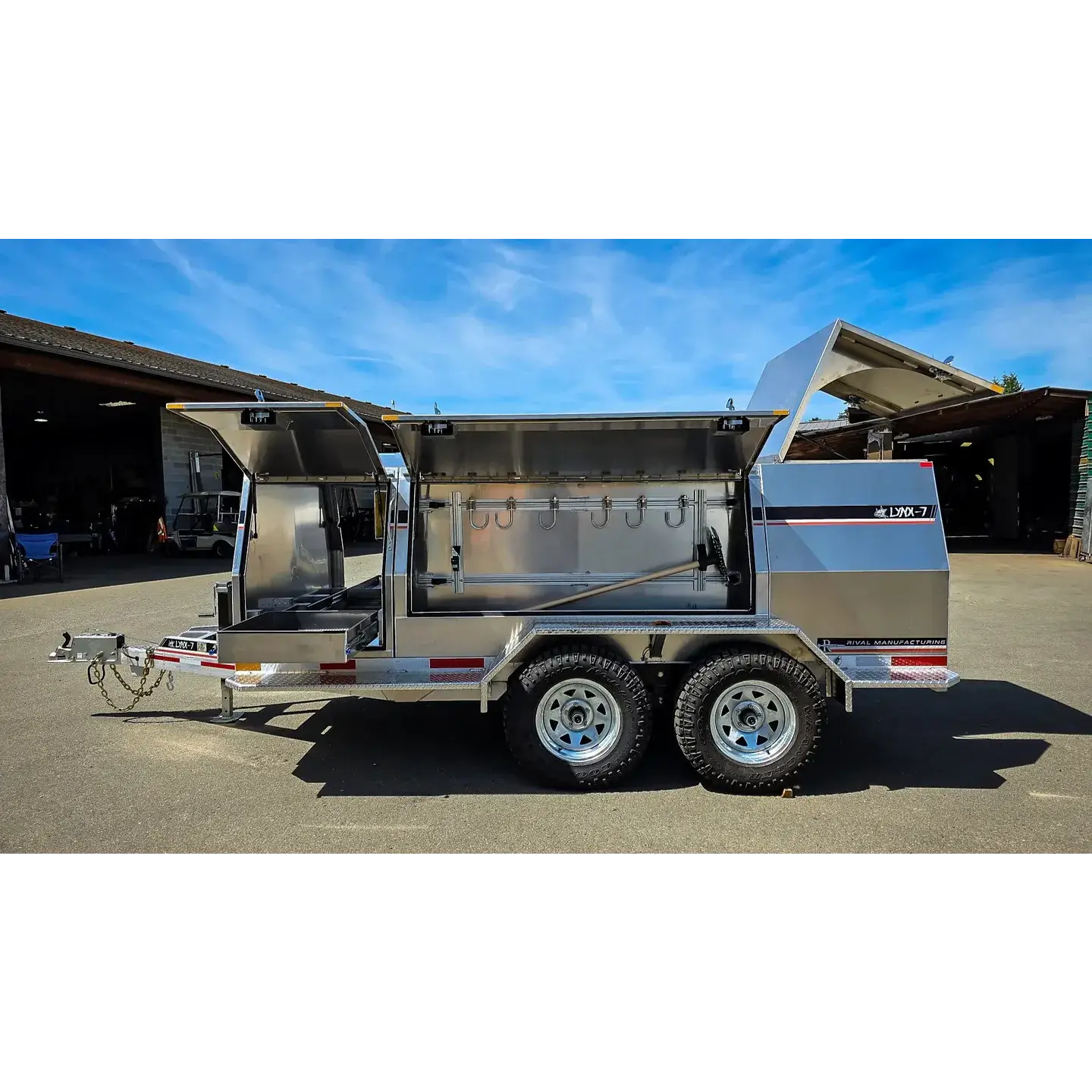 The Lynx 7 is a response-ready 6′ x 12′ wildfire-grade aluminum trailer. Equipped with surge brakes, no brake controller is required. Includes a 400US gallon (1,514L) water storage tank, and can be configured with the Vallfirest Black Hawk 4 or Black Panther 4 pumps. Finishes offered include powdercoat, paint, or decal/wrap finishes, however, bare aluminum looks great too.
